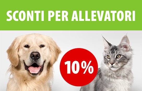 Iscriviti al Programma Allevatori ed avrai uno sconto del 10% su tutti gli ordini di valore superiore a 79 euro. |  | Solo previa registrazione al programma. Lo sconto automatico del 10% non è cumulabile con altre promozioni! |